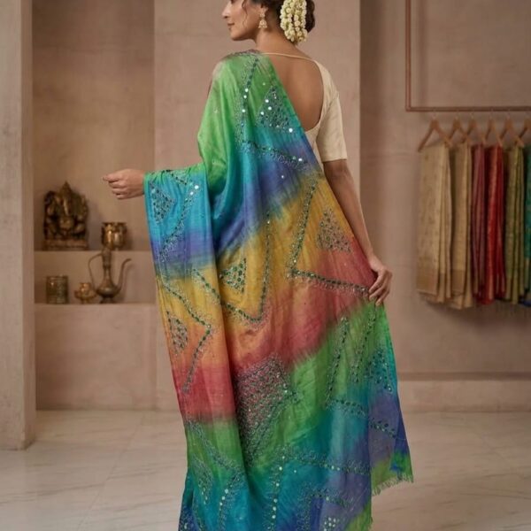 A vibrant multicolor Tussar silk saree featuring elegant cut work patterns, perfect for festive and statement ethnic styling.