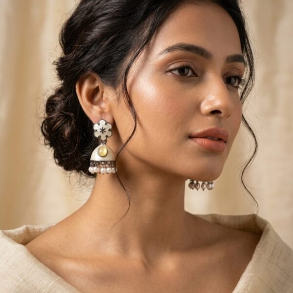 Elegant white Jhumka. Floral design.