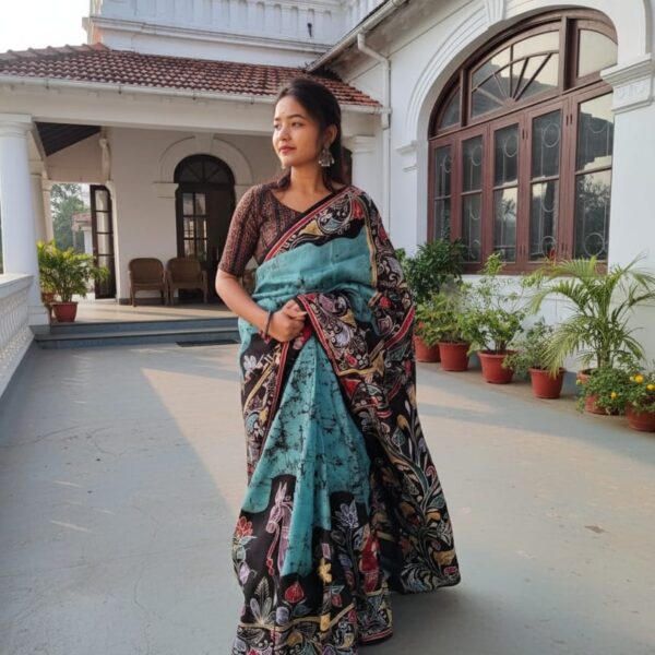 Grace yourself with this stunning Bangalore Silk Saree in a soft beige shade, beautifully adorned with turquoise blue woven motifs. A perfect blend of elegance and tradition, ideal for weddings, festivals, and special occasions.Shop this elegant Bangalore Silk Saree in beige with turquoise blue woven motifs. Perfect for weddings, festivals, and special occasions. Lightweight, traditional & timeless – a must-have for your ethnic collection.