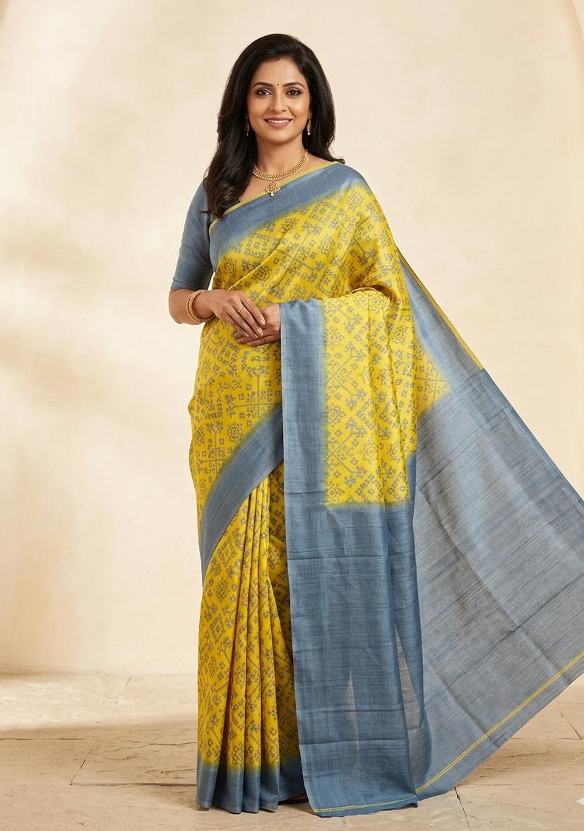 Tussar saree with Hand Blocked Print