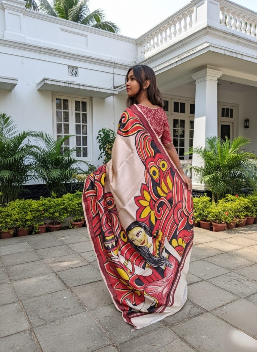 Painted in black and white, the old Kolkata’s Babu and Bibi (man and wife) talks about a common pass time for the couples, chatting and smoking. The painting style is known as ‘Kalighat er Patachitra’ which connects to Kalighat, the famous pilgrimage in Kolkata, and depicts the city life. Rajesh Chitrakar, an artist of the new generation has learned and mastered the art so well.