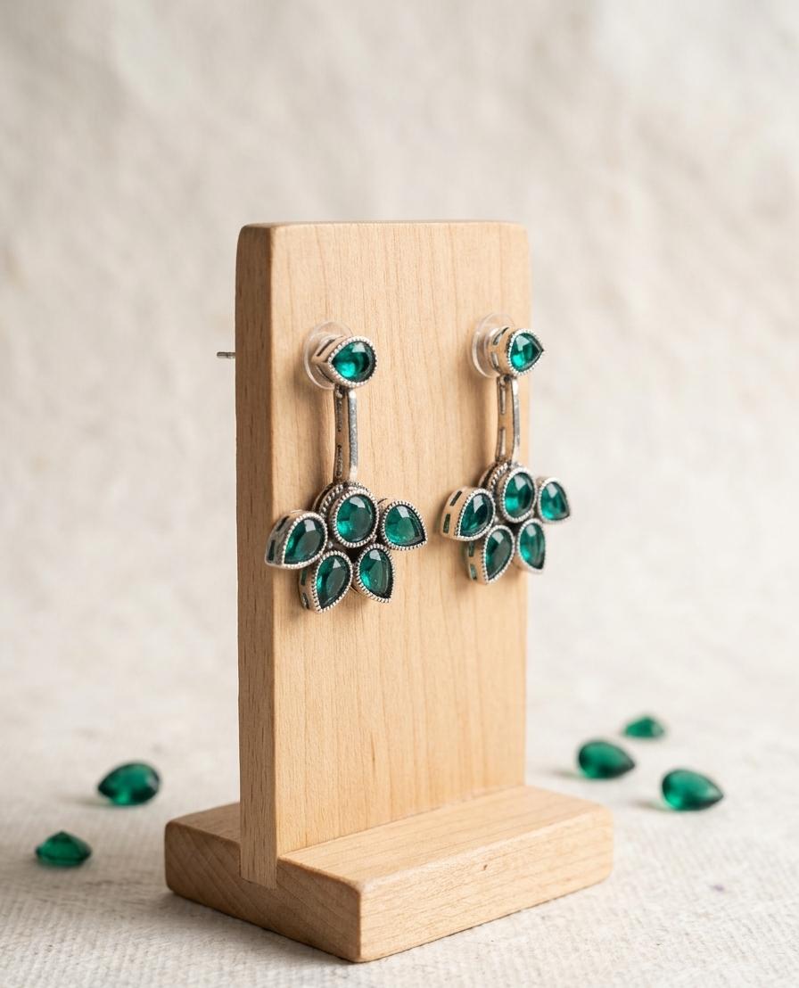 The rich emerald tones bring a sense of luxury and depth, while the gold-toned setting enhances the overall elegance of the piece. The multi-stone arrangement adds dimension and sparkle, making these earrings perfect for occasions where you want to stand out effortlessly.